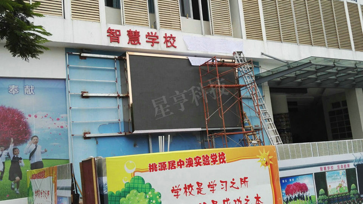 近日,由深圳星亨科技承制的P5戶外LED全彩顯示屏在深圳桃源居中澳實驗學校點亮,為該校校慶活動增添光彩。該顯示屏由P5戶外高清表貼模組組成,采用國星金線燈珠、創聯電源、MBI芯片、靈星雨控制系統等高端配置,造就了極佳的品質與效果。